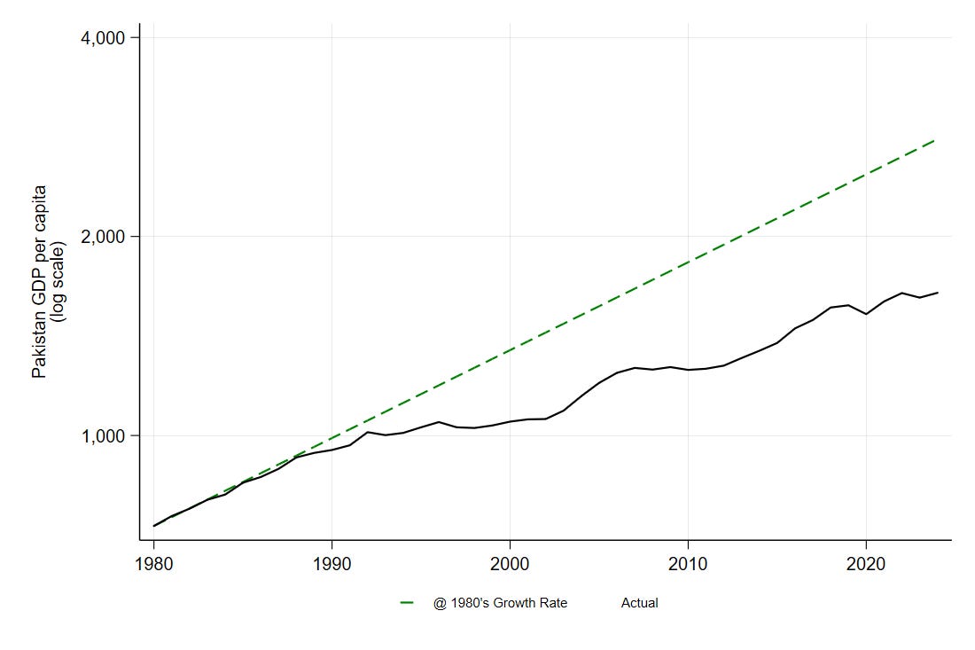 The figure above makes it clear that Pakistan is stuck in the wrong stagnation regime. Our long-run growth trajectory has been essentially the same whether the country is ruled by the generals, the PPP, PML-N, PTI, or today’s convex combination. What Pakistan needs is a new regime guided by credible, consistent policies grounded in rational rather than whimsical thinking. I have long argued that Pakistan’s strategic nervous system is broken. Rebuilding it will require serious investment, sustained effort, and real resolve.